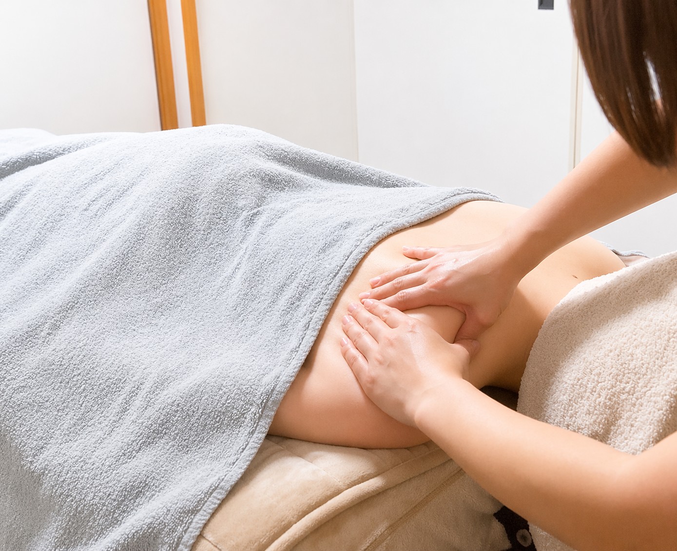 はりきゅう+全身アロマトリートメントに加え、仰向け時にはお腹を温める箱灸も。 身体の芯から温め、より深く整える特別ケアコースです。